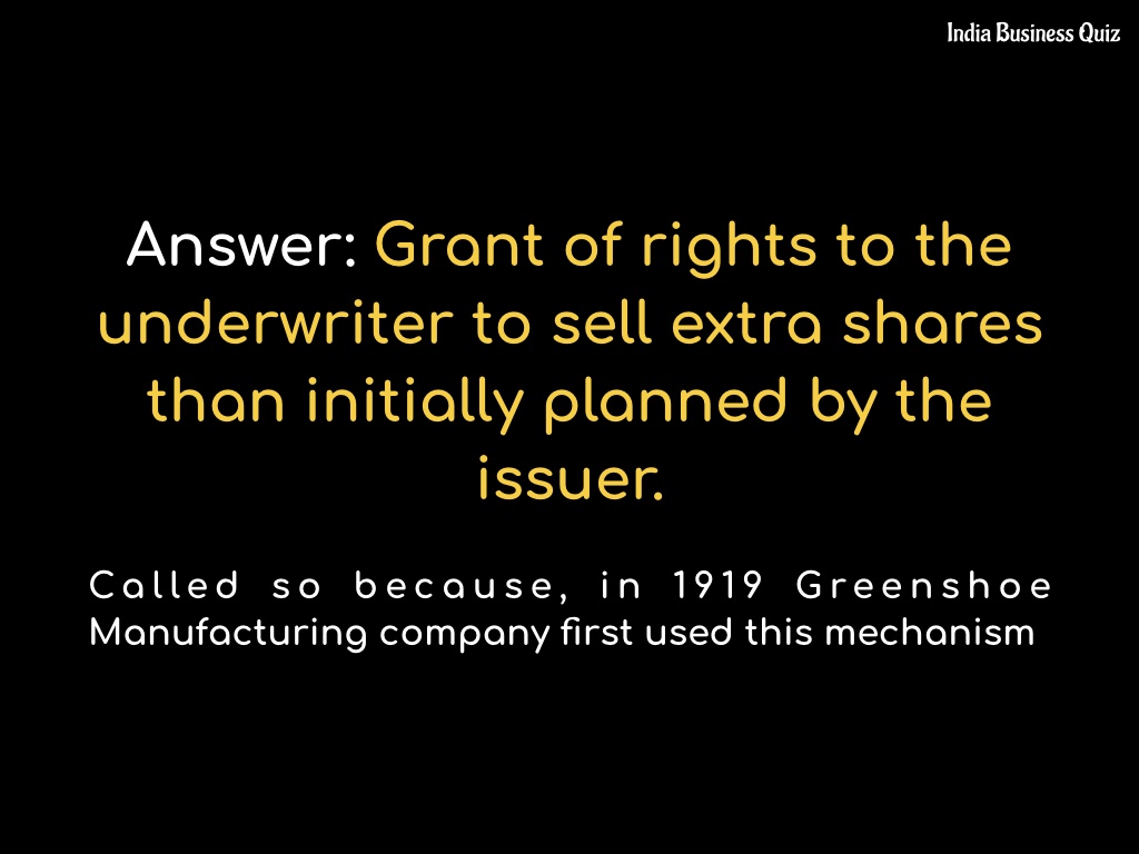 1. A greenshoe option is an over-allotment option. In the context of an initial public offering (IPO), it is a provision in an underwriting agreement that grants the underwriter the right to sell investors more shares than initially planned by the issuer if the demand for a security issue proves higher than expected.