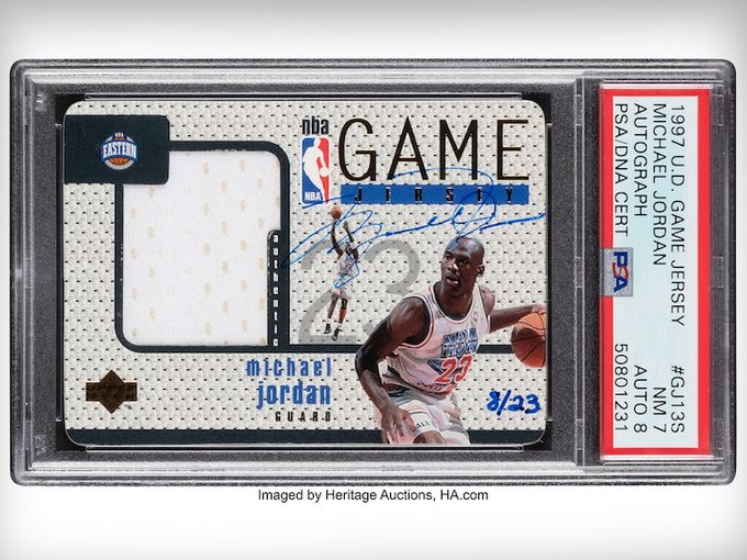 Q14. Sports card and other memorabilia have a vibrant market. Recently a 1997 sports card with Michael Jordan’s authentic signature was auctioned. At what price was this card sold in February 2021 ?