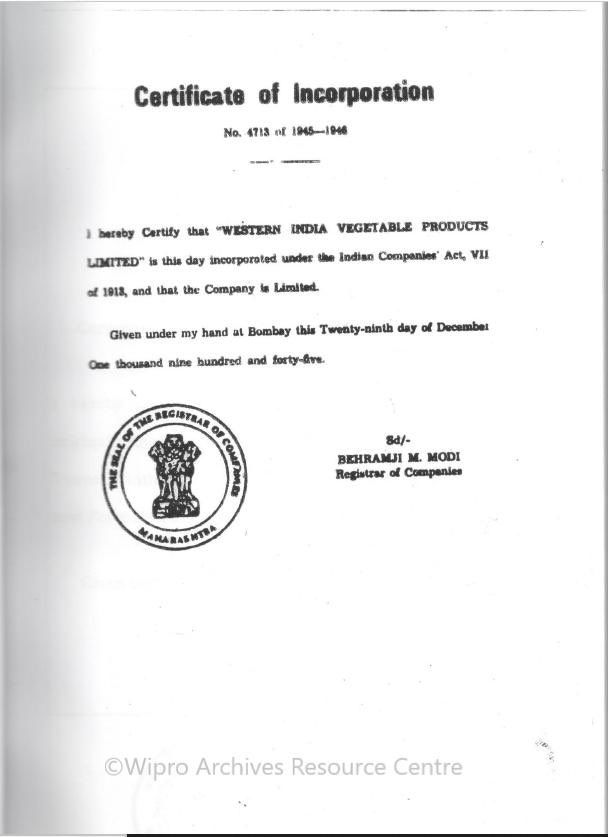 Q2. Which modern day company’s Certificate of Incorporation is this ?