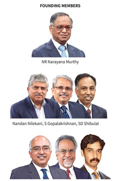 Q3. Infosys recently celebrated its 40th anniversary. Here are the 7 original founders..The founders in the first two rows are well known , can you name the three founders in the last row ?