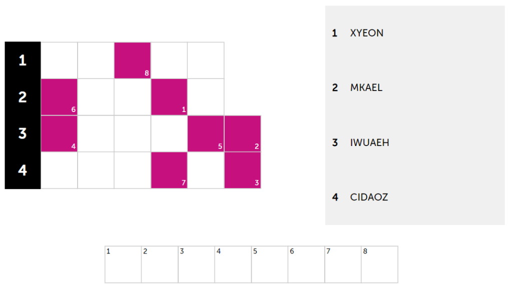 Unscramble 4 famous brands with jumbled letters! Example: PALEP = APPLE. Correct answers turn green. Use letters from each brand to solve the hidden puzzle (clue provided). The number indicates the letter’s position in the solution. Crack the hidden solution to help unscramble tricky brands!