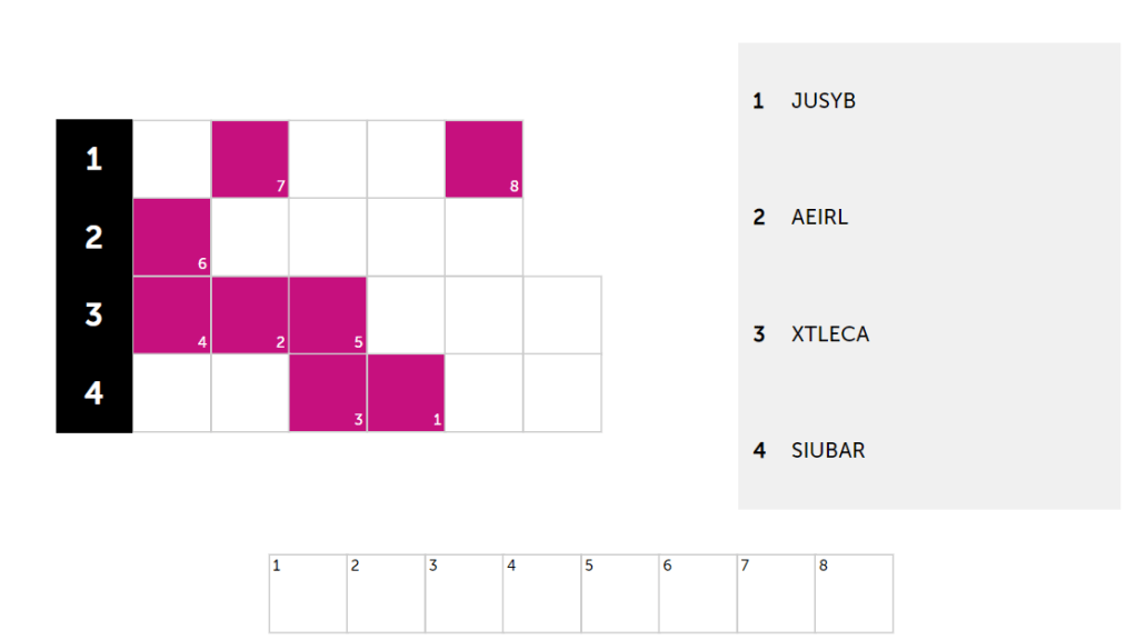 Unscramble 4 famous brands with jumbled letters! Example: PALEP = APPLE. Correct answers turn green. Use letters from each brand to solve the hidden puzzle (clue provided). The number indicates the letter’s position in the solution. Crack the hidden solution to help unscramble tricky brands!