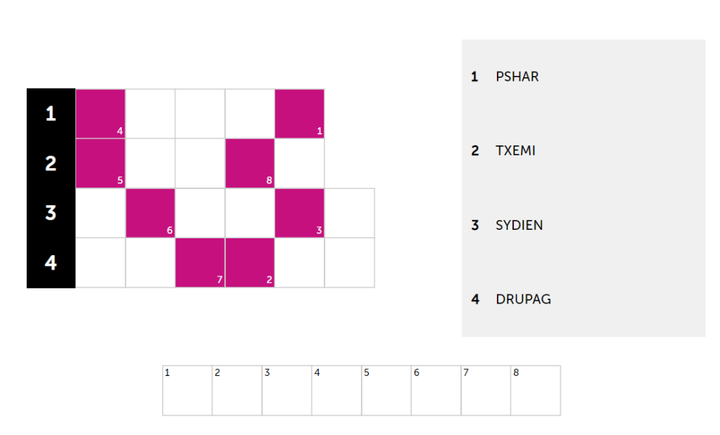 Unscramble 4 famous brands with jumbled letters! Example: PALEP = APPLE. Correct answers turn green. Use letters from each brand to solve the hidden puzzle (clue provided). The number indicates the letter’s position in the solution. Crack the hidden solution to help unscramble tricky brands!