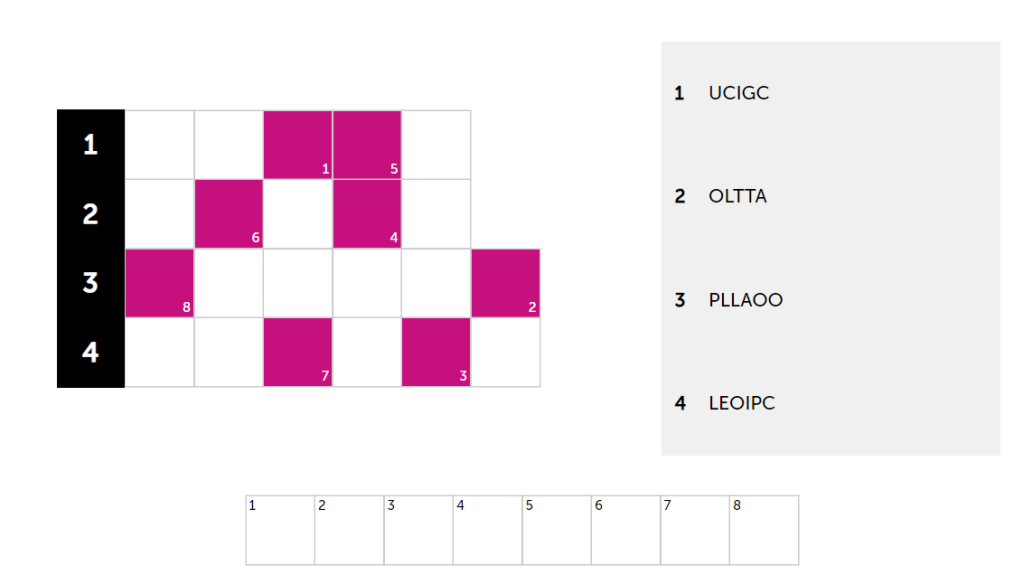Unscramble 4 famous brands with jumbled letters! Example: PALEP = APPLE. Correct answers turn green. Use letters from each brand to solve the hidden puzzle (clue provided). The number indicates the letter’s position in the solution. Crack the hidden solution to help unscramble tricky brands!
